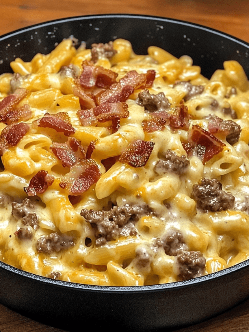 The Loaded Bacon Cheeseburger Alfredo Pasta recipe is a delicious and satisfying dish that brings together the flavors of a classic cheeseburger and creamy Alfredo sauce. It’s a perfect comfort food that will please both kids and adults alike. Give this recipe a try, and I guarantee it will become a family favorite in no time.