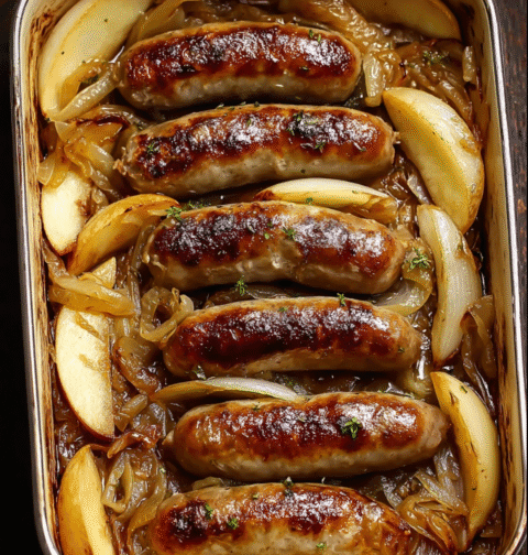 Oven-Braised Beer Brats with Apples & Onions